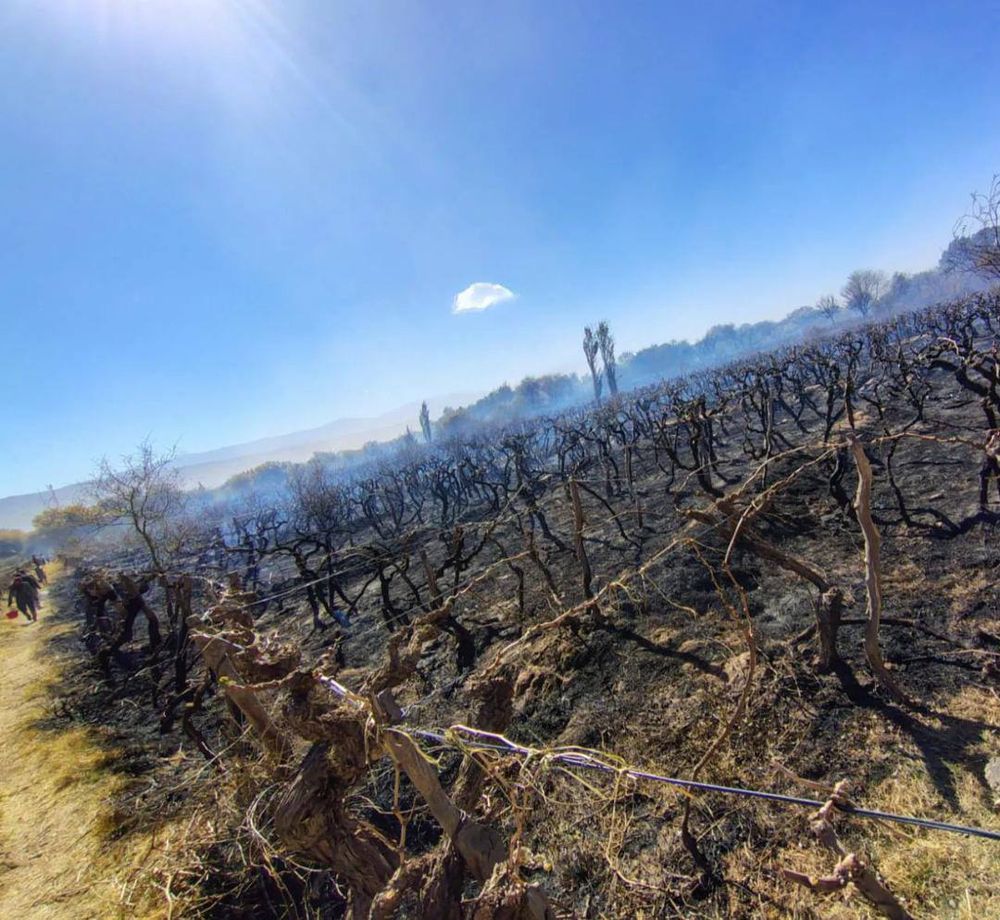 Un incendio que arrasaba todo a su paso destruyó una vivienda y viñedos en Fiambalá