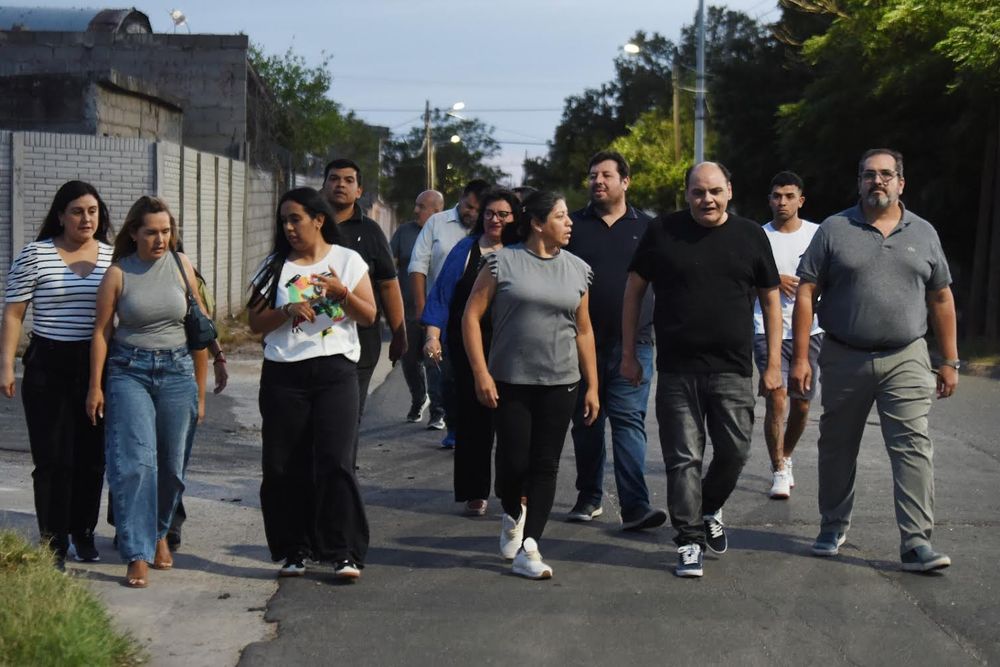 En la recorrida acompañaron al intendente el secretario de Servicios Ciudadanos, Martín Barrionuevo; la diputada provincial Cecilia Barrios; el concejal del circuito 7, Matías Funes; y el director de Alumbrado Público, Cristian Argañaraz, entre otras autoridades.