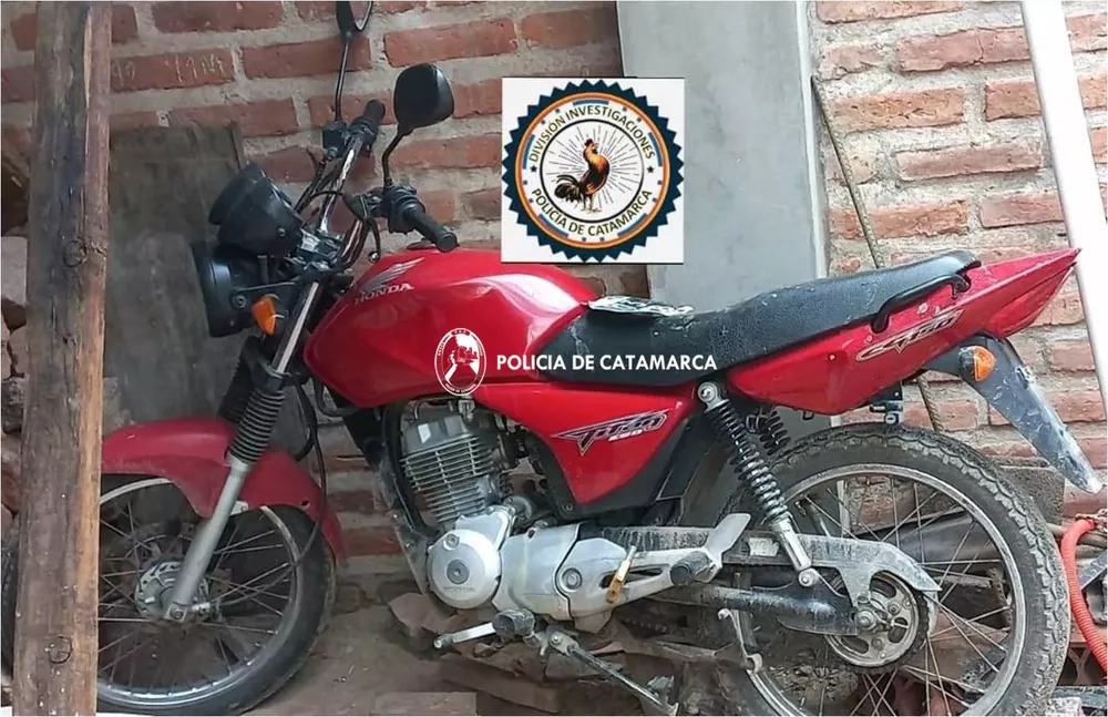 En los primeros minutos de la madrugada de hoy, a las 00:30, efectivos de la División Investigaciones de la Policía de la Provincia se constituyeron en la esquina de las calles Señor de los Milagros y Ambato, donde se entrevistaron con un hombre de 40 años de edad, quien manifestó que personas desconocidas ingresaron al interior de su garaje y le sustrajeron una motocicleta Honda Cg Titán 150 cc., de color rojo, para luego darse a la fuga.